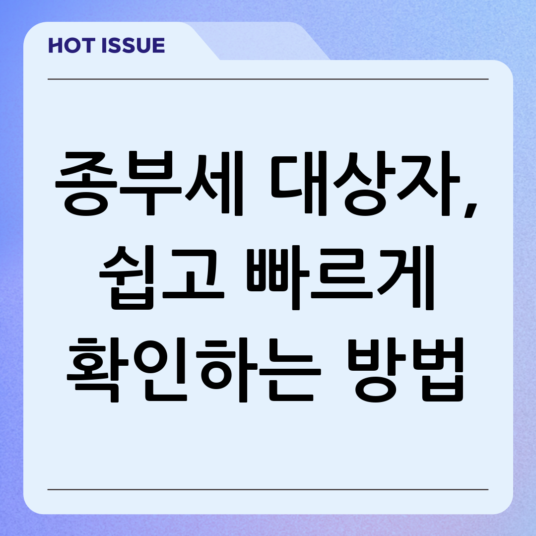 안녕하세요! 오늘은 많은 분들이 궁금해하시는 종합부동산세(종부세) 대상자 확인 방법에 대해 쉽고 명확하게 알려드릴게요. 2024년, 세법 개정으로 인해 종부세 관련 내용이 …
